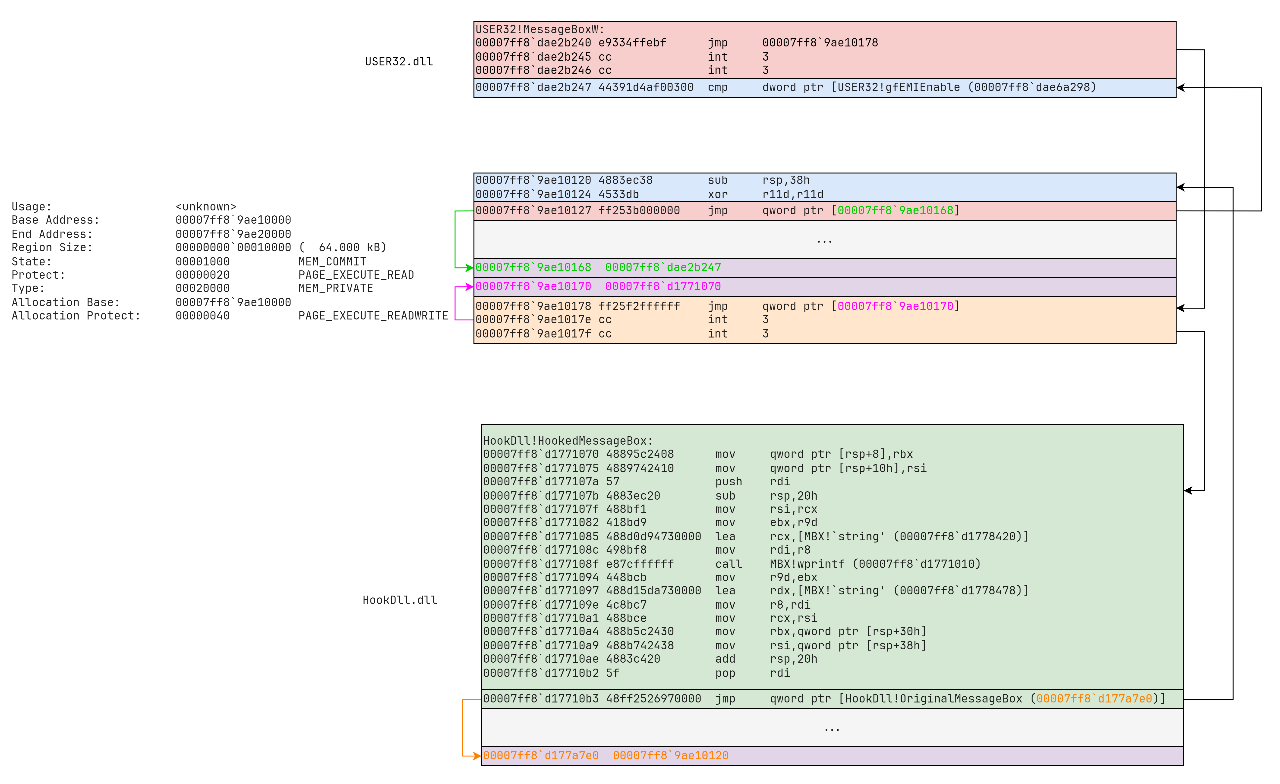 InlineHook((void *) MessageBoxW, (void *) HookedMessageBox, (void **) &OriginalMessageBox);
