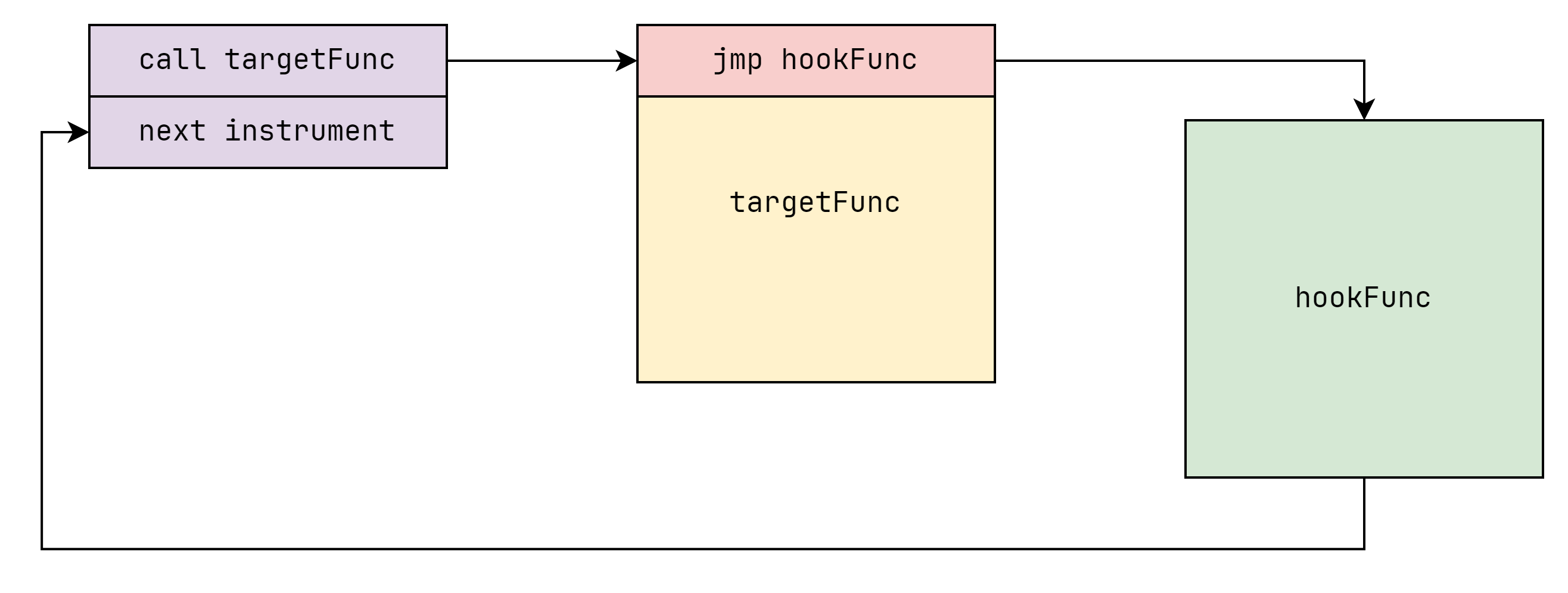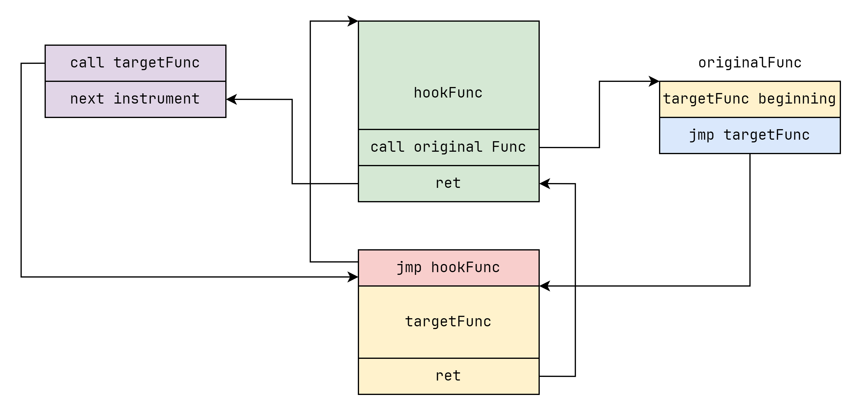 DWORD targetAddr = (DWORD) targetFunc + byteCount; // 计算目标函数下一指令的地址