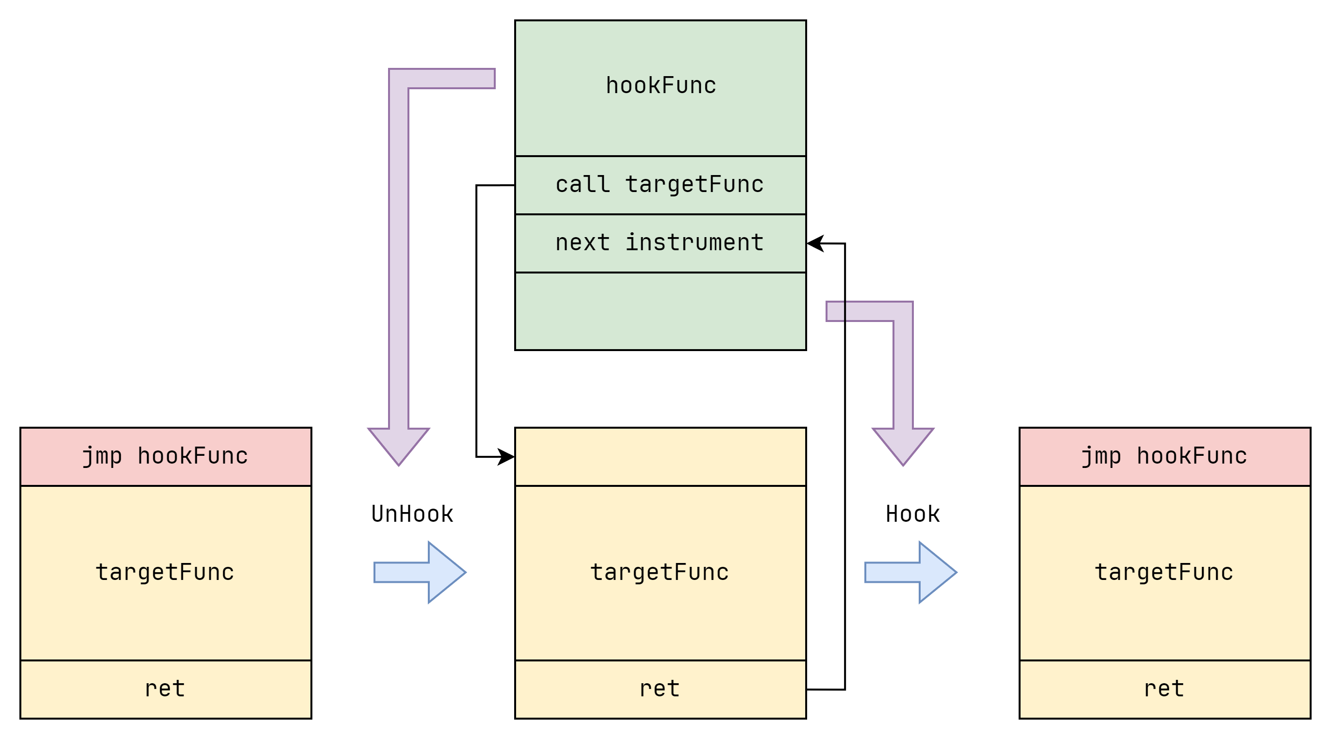 *(BYTE *) targetFunc = 0xE9; // JMP指令