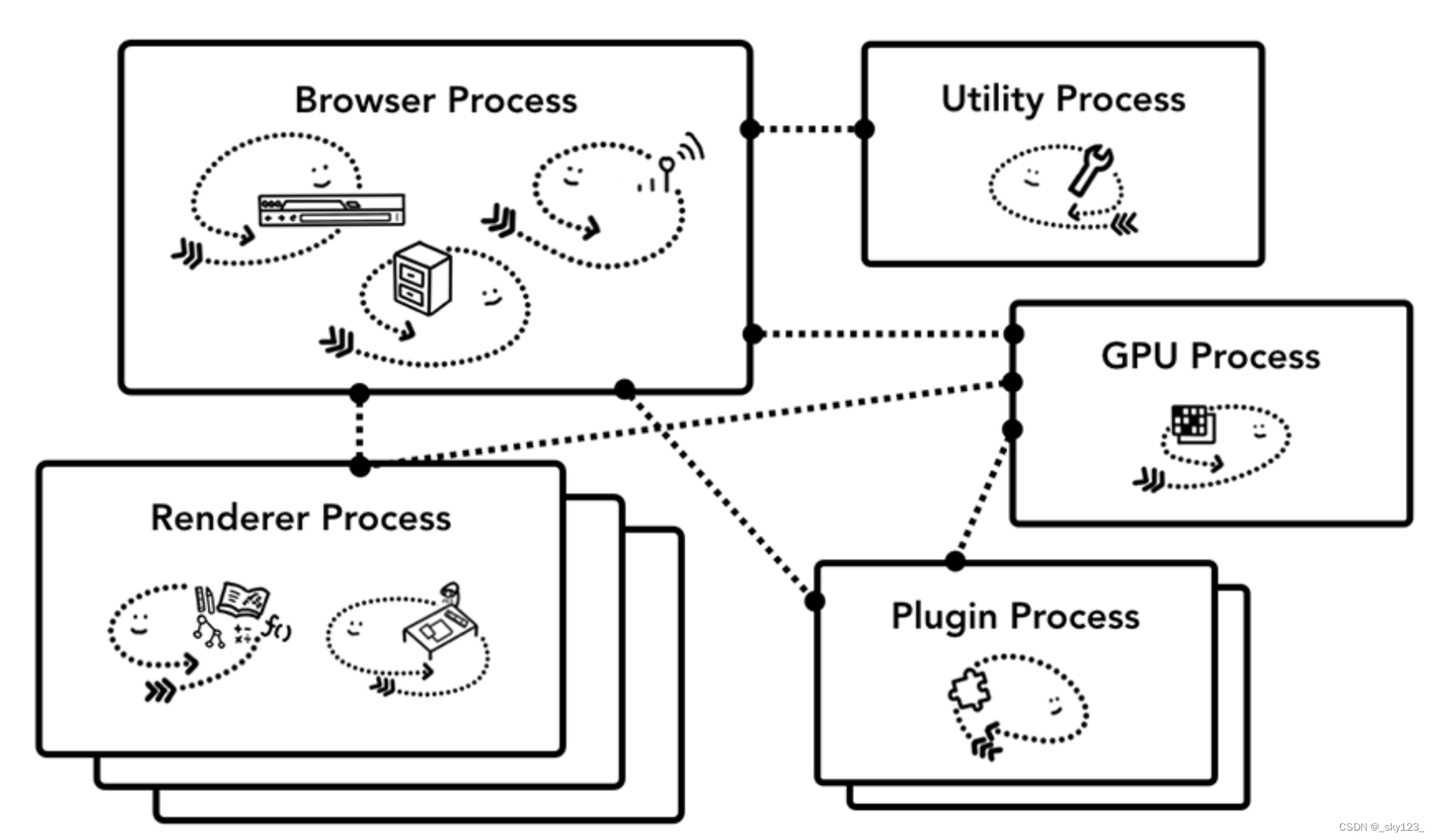 背景知识 浏览器框架 它是⼀个多进程+IPC的程序, 不同的进程管理不同的内容,