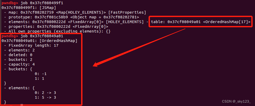 调试时输入 job + DebugPrint打印的对象地址 可以打印出对象的结构。