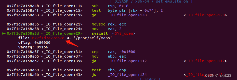 我们可以通过 open 的第一个参数最低字节是否为 \x7c 来判断打开的是不是 /proc/self/maps 。