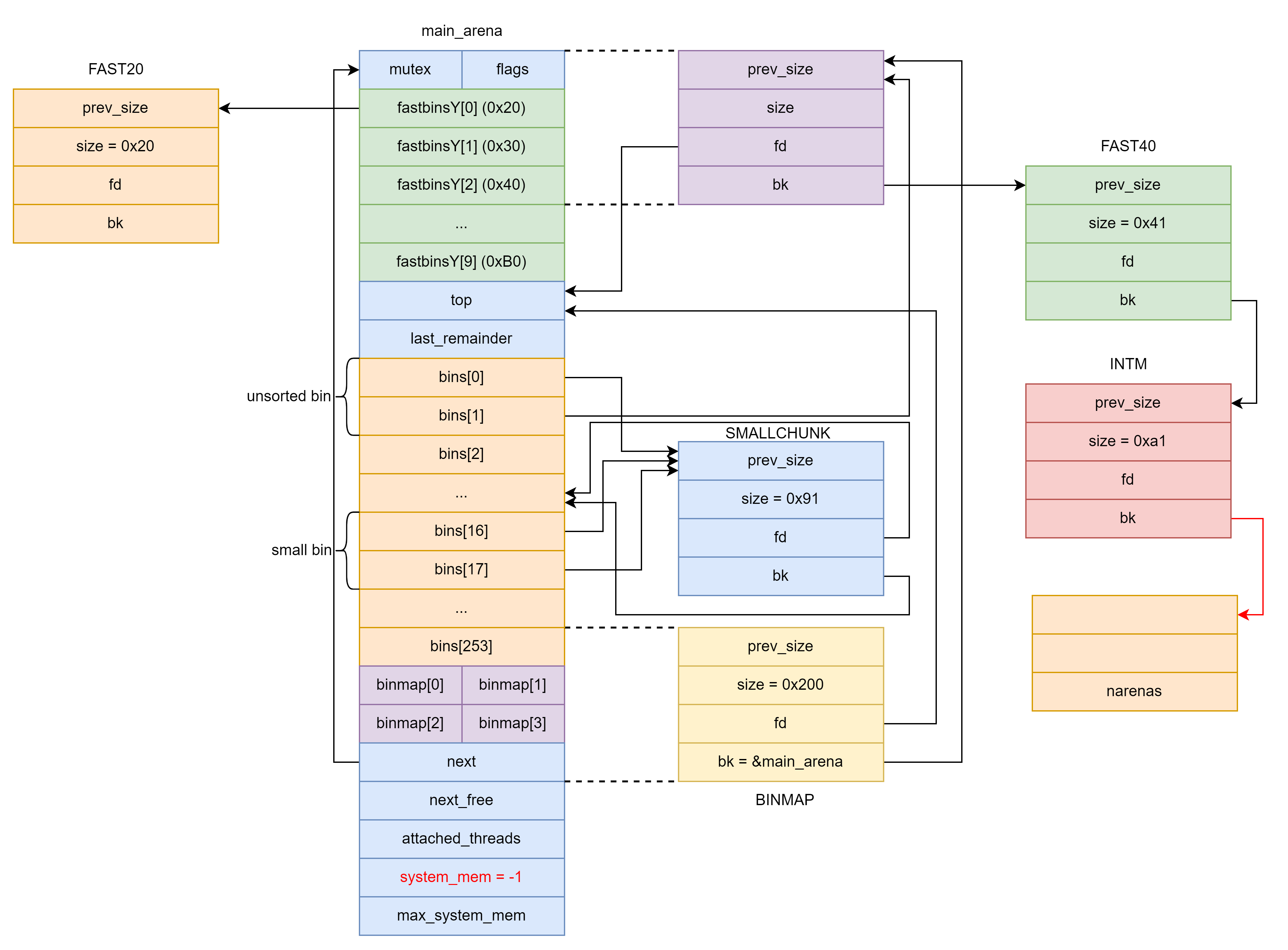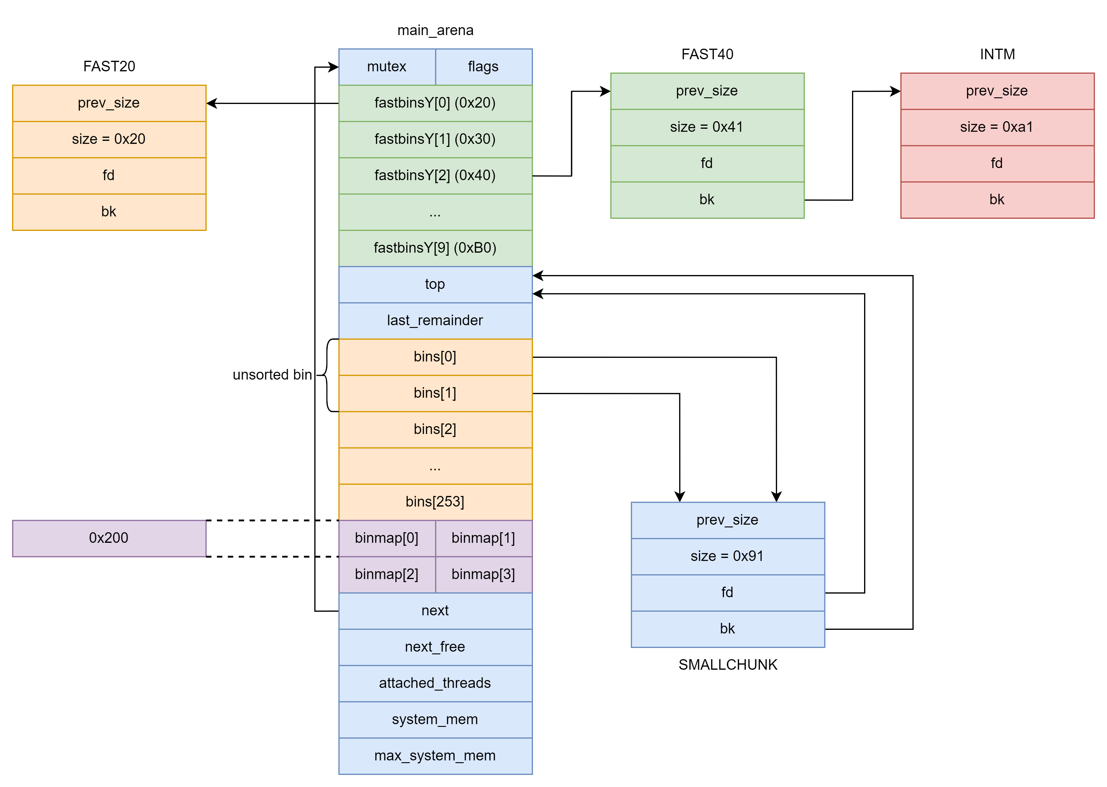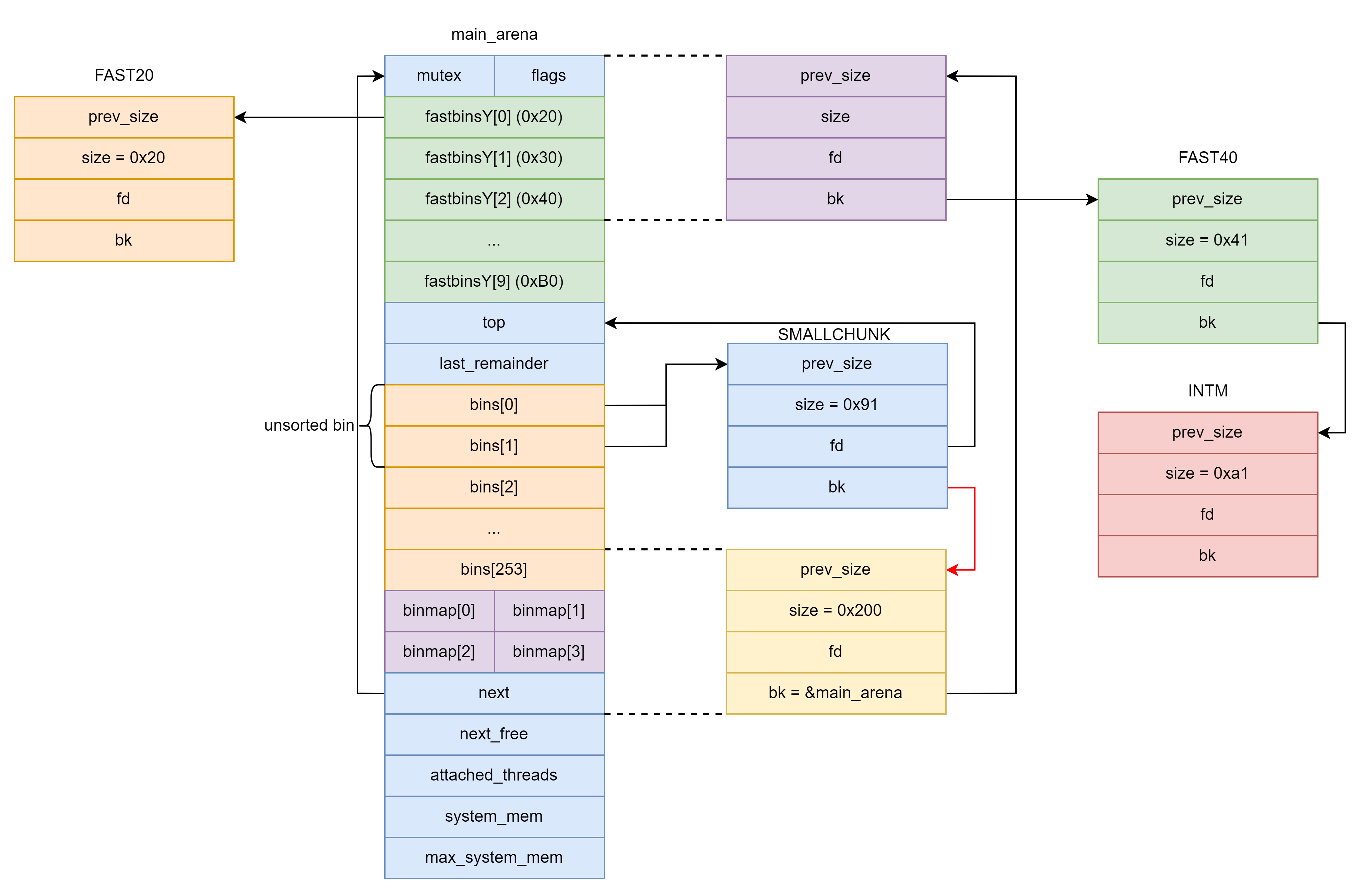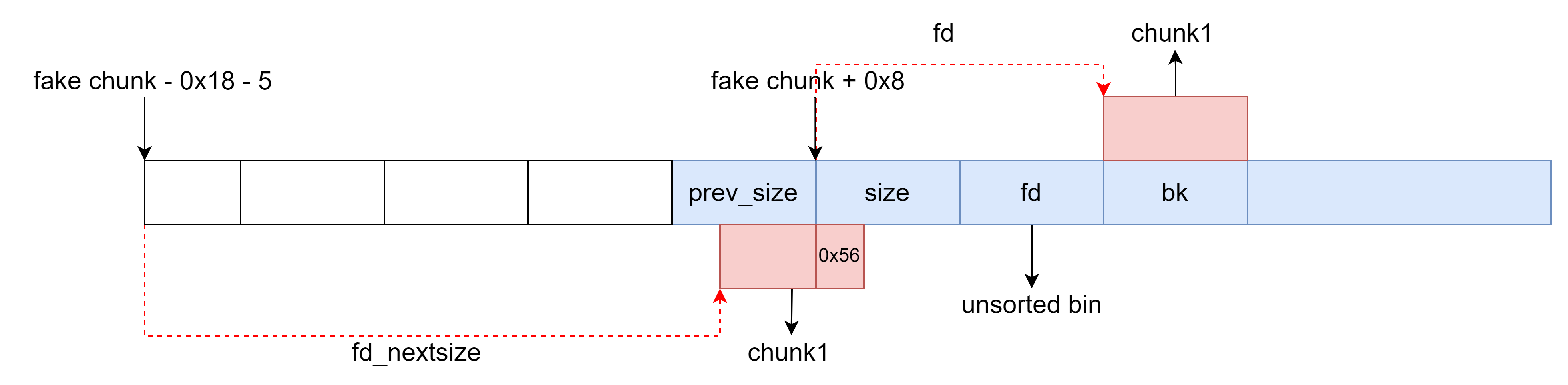fakeFD -> bk == P1<=>*(&fakeFD + 0x18) == P1<=>*fakeFD == &P1 - 0x18fakeBK -> fd == P1<=>*(&fakeBK + 0x10) == P1<=>*fakeBK == &P1 - 0x10