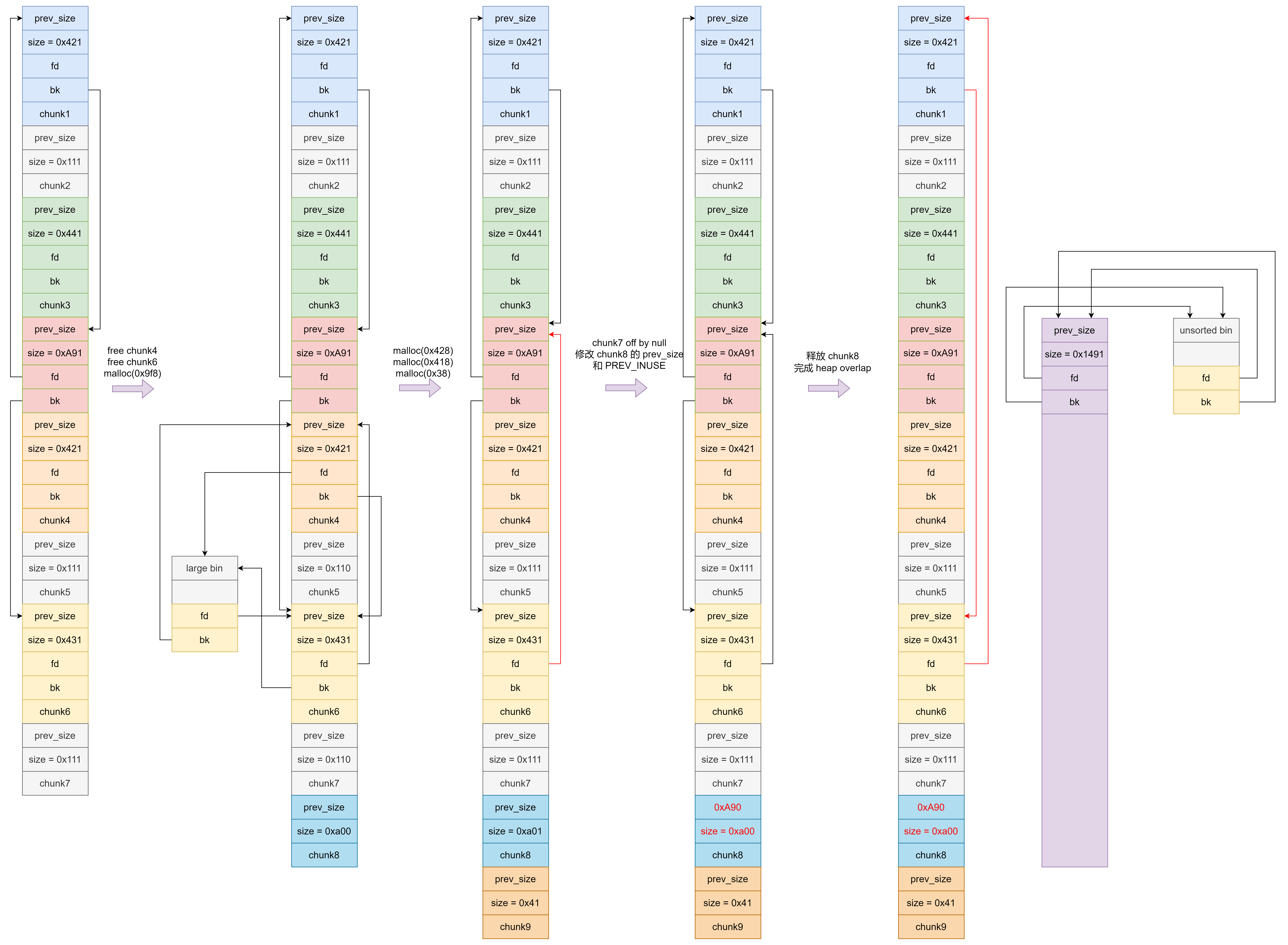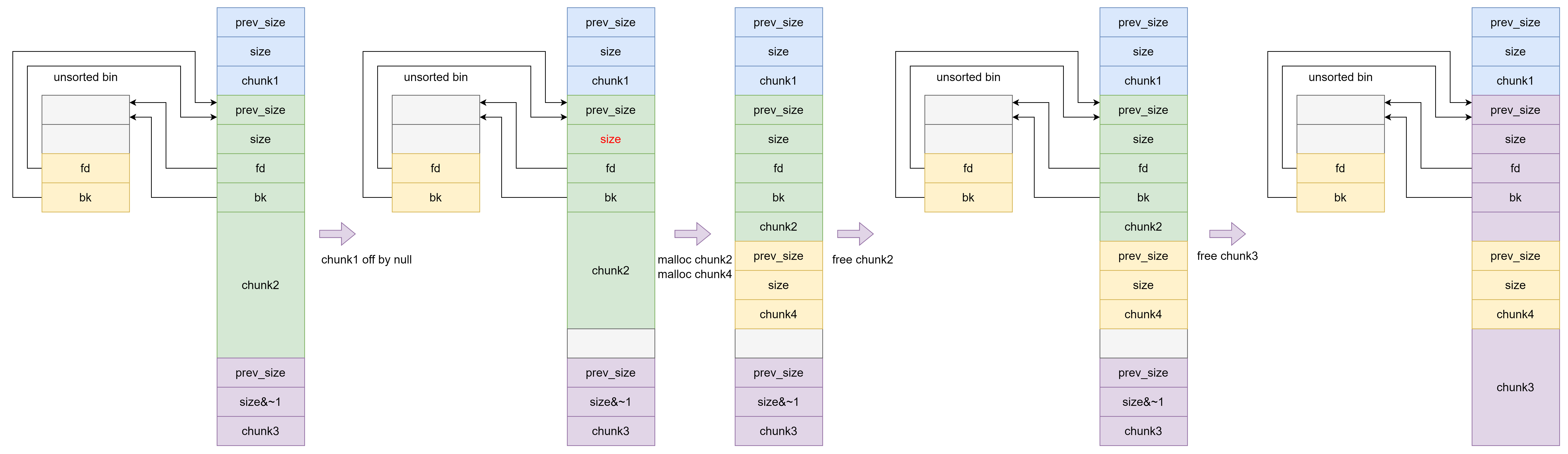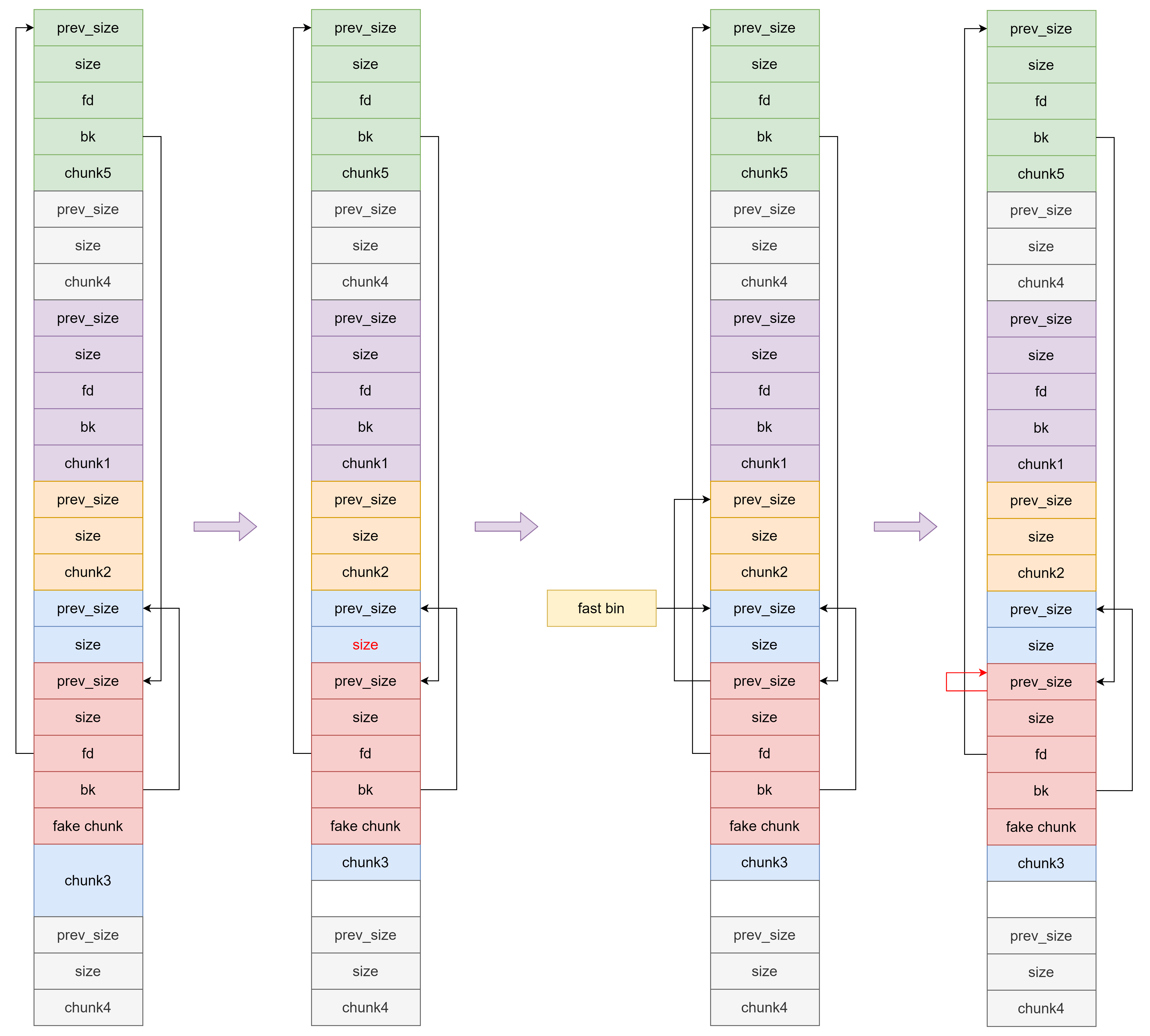 malloc_printerr("corrupted size vs. prev_size");要将 chunk2 的 prev_size 修改成 fake chunk 的 size。