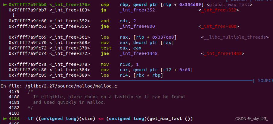debug glibc:对于一些复杂的堆利用,可以先用支持源码调试的 libc 完成利用,然后改偏移打题目提供的 libc 。