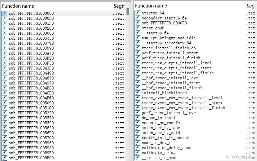 注意,该保护只是在代码段打乱顺序,在数据段偏移不变,例如 commit_creds 函数的偏移改变但是 init_cred 的偏移不变。