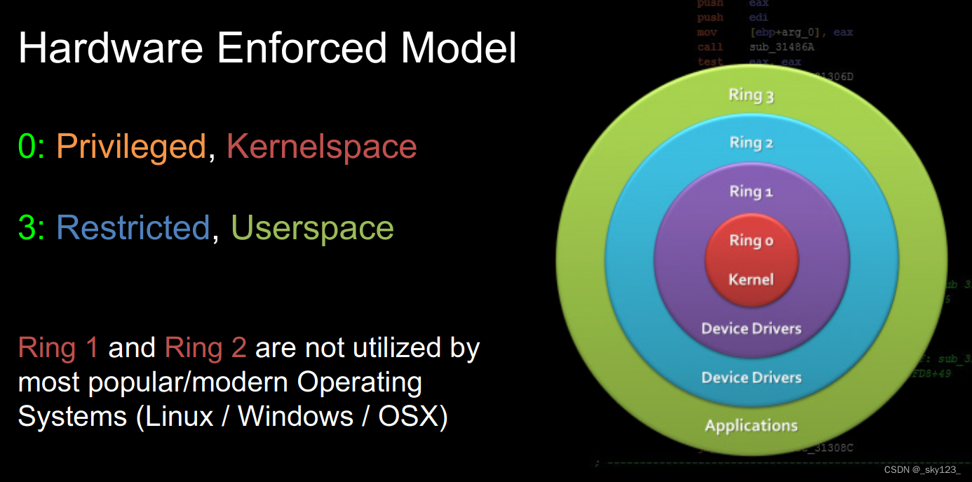 - 混合内核(Hybrid Kernel):结合单体内核和微内核的优点,将部分功能运行在内核态,部分功能在用户态。
