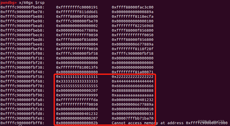 mmap 的内存是没有映射到实际物理内存的虚拟内存,如果 rsp 到达没有写入 rop 的位置同样也会导致越界错误,因此在使用前先写入数据使其映射到物理内存上。