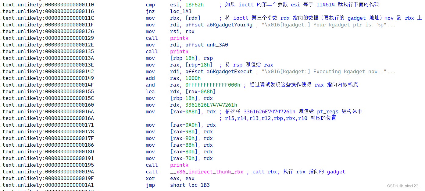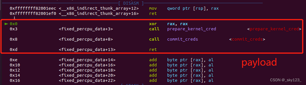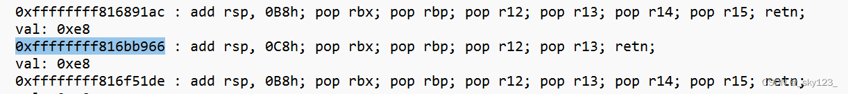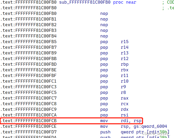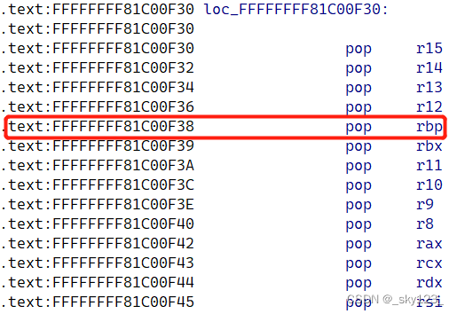 1 2 3 4 5 .text:FFFFFFFF81238D50 push rdi .text:FFFFFFFF81238D51 pop rsp .text:FFFFFFFF81238D52 pop rbp .text:FFFFFFFF81238D53 add rax, rdx .text:FFFFFFFF81238D56 retn
