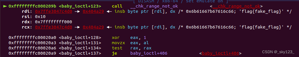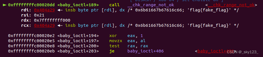 我们在调用 core_copy_func 函数之前先将寄存器设置为几个特殊的值,然后再 core_copy_func 函数的返回处下断点。