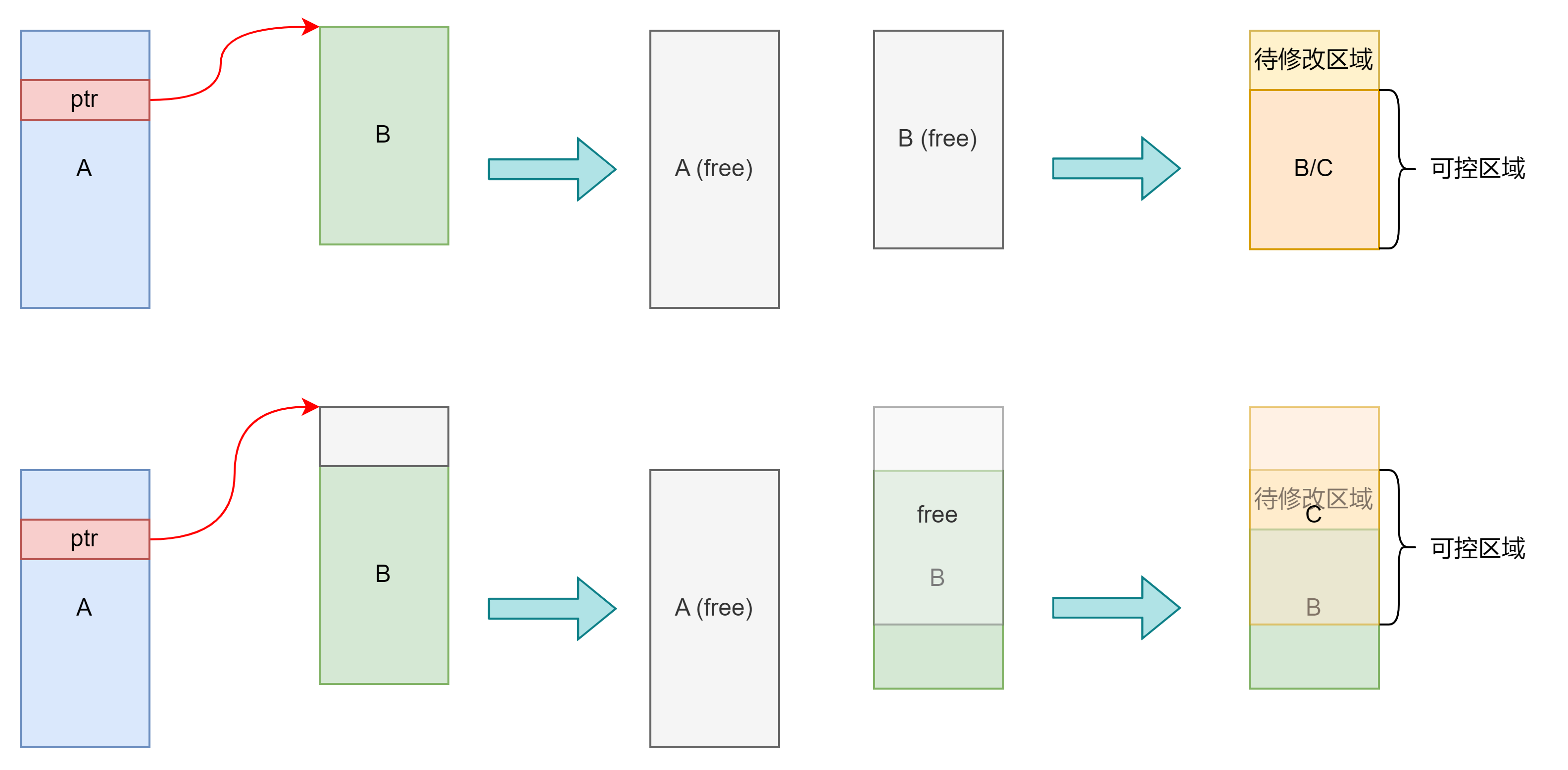 释放其中一份内存页,在 vulnerable kmem_cache 上堆喷,让其取走这份内存页