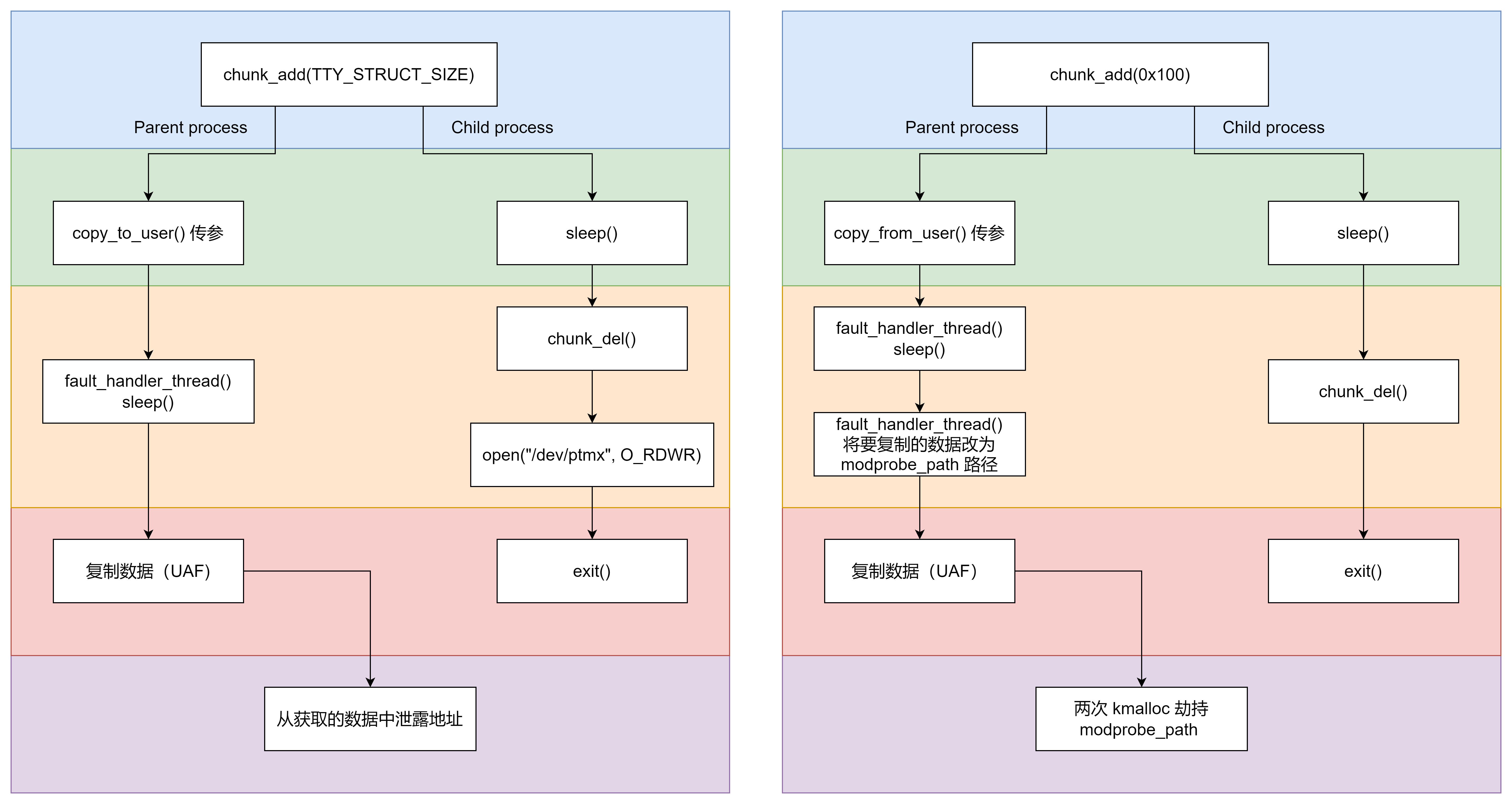 第二次同理,利用 userfaultfd 构造 UAF 劫持 freelist 修改 modprobe_path 使得修改 flag 文件权限的 shell 脚本以管理员权限执行。