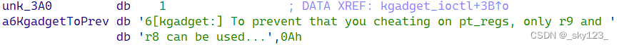 例题:MINI-LCTF2022 - kgadget 附件下载链接 主要漏洞点在 kgaget_ioctl 函数上。分析如下: 总之这个函数可以执行指定位置的代码。 不过根据输出他提示信息, pt_regs 中只有 r8 和 r9 寄存器可以使用,但是除去这两个寄存器和系统调用以及传参用掉的寄存器还有 r11 和 rcx 的值没有被覆盖。 为了探究原因,首先在系统调用前将寄存器赋值为特殊值。 然后在 entry_SYSCALL_64 函数处下一个条件端点。 运行测试程序成功断在了目标位置。 观察寄存器发现 rcx 和 r11 以经被写入其他值了。因此这两个寄存器实际上是无法利用的。 漏洞利用的手段比较巧妙。 首先在用户空间喷射大量下图所示的内存页。 由于栈迁移的 gadget 占了绝大多数,因此 ioctl 执行随便一个地址的 gadget 很大概率会将栈迁移到 pt_regs 结构体。 在 pt_regs 结构体中利用 r8 和 r9 两个寄存器将栈迁移到喷射内存的区域的某个地址,很大概率会迁移到 add rsp; ret; 和 ret; gadget 处,很大概率会最终执行到 rop 完成 提权。