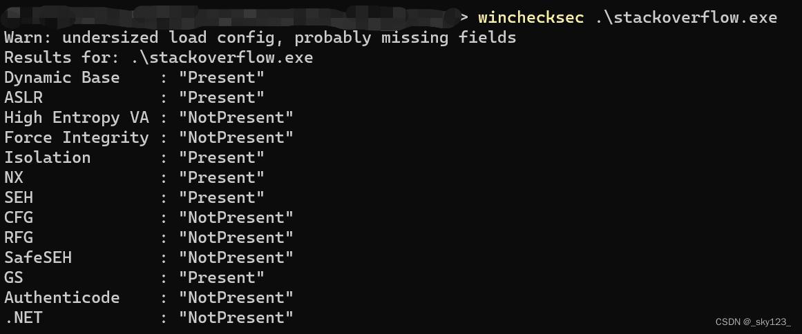 winchecksec 是 windows 版的 checksec ,不过有时候结果不太准确。