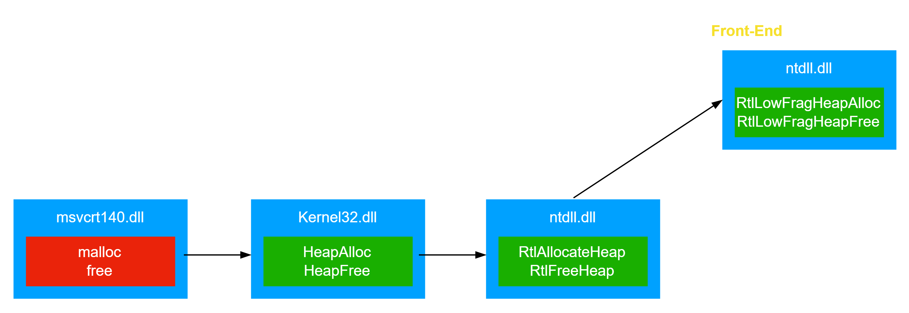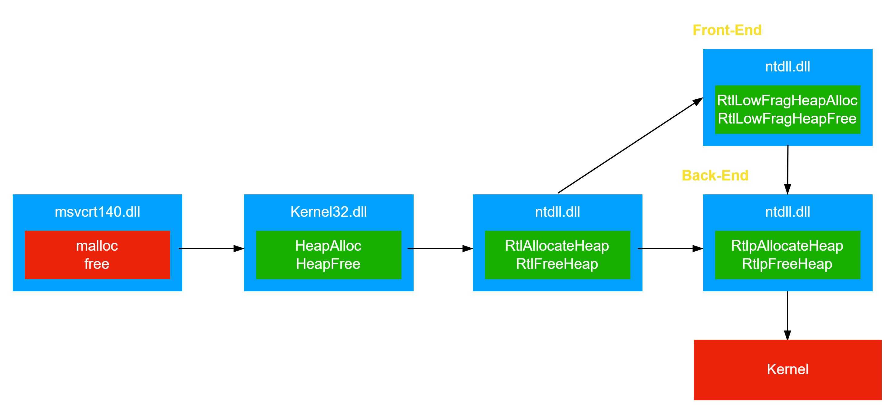 VS 堆,LFH 堆和用户申请内存都有可能从后端堆分配内存,这里选择用户申请内存时的过程进行分析,其余过程基本一致。