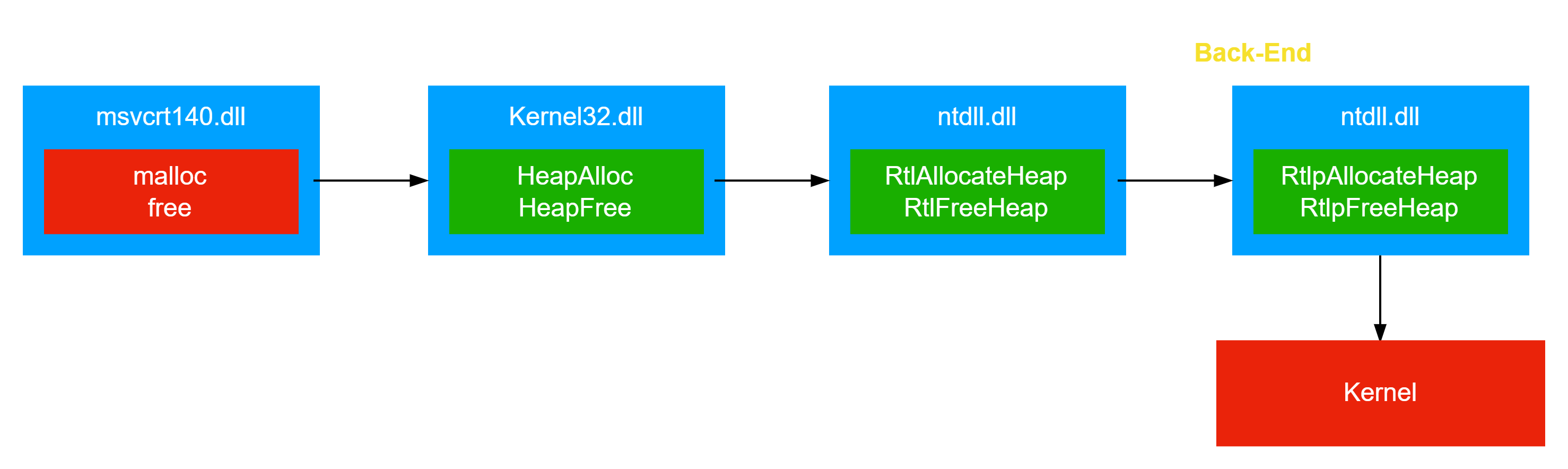 VS 堆,LFH 堆和用户释放内存都有可能导致后端堆释放内存,这里选择用户释放内存时的过程进行分析,其余过程基本一致。
