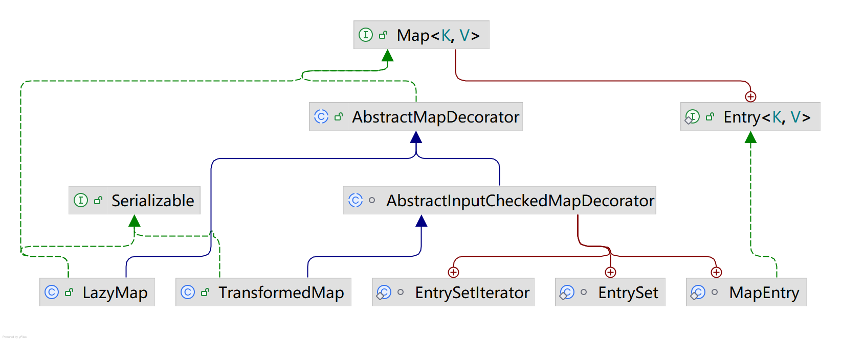 另外 TransformedMap 构造函数还会调用父类构造函数,而 TransformedMap 有如下继承关系: