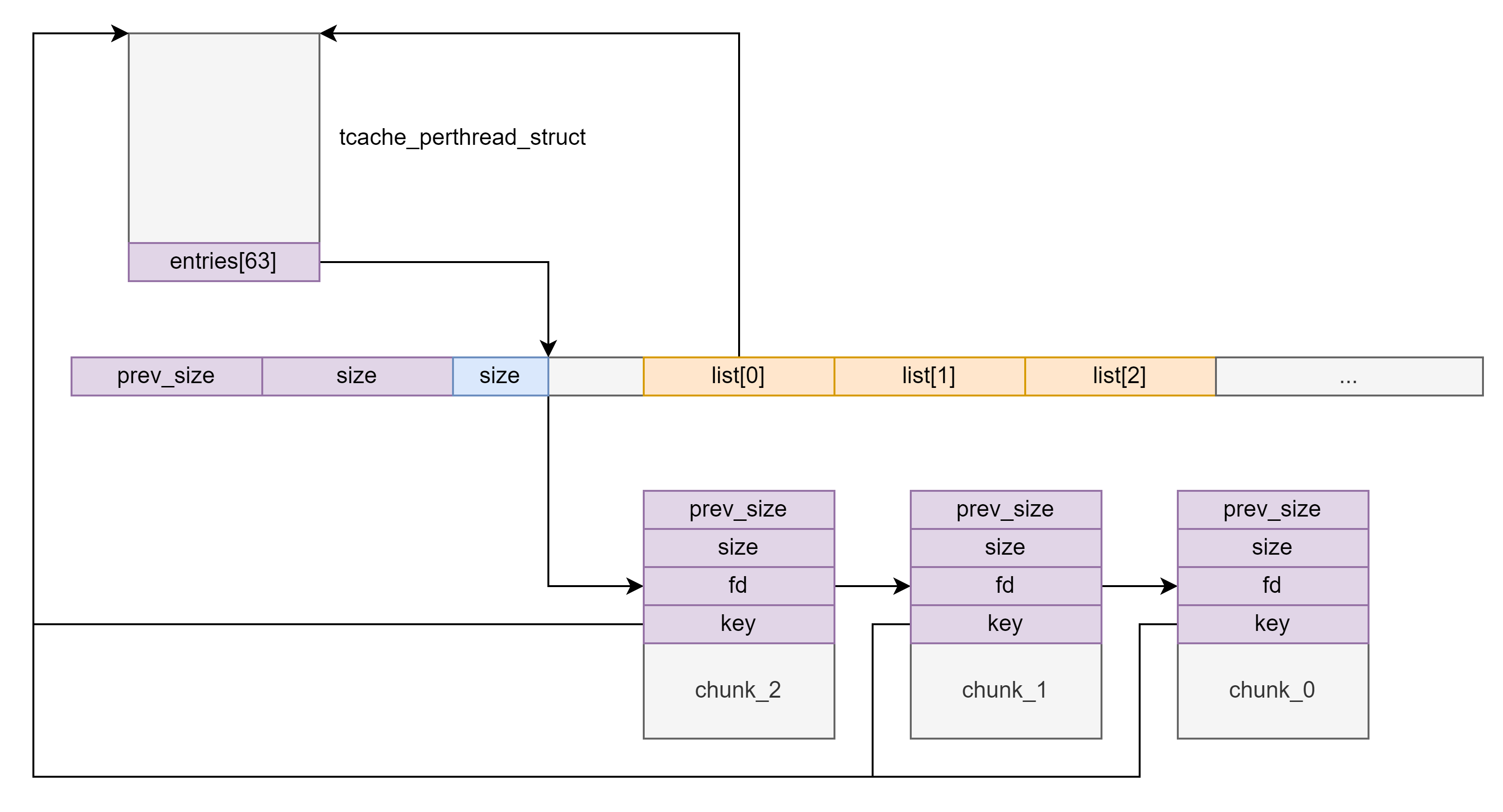 调试发现其中第一项 QEMUTimerList 指针指向的位置与前面紧邻的 tcachebin 中 0x20 大小的空闲堆块紧邻: